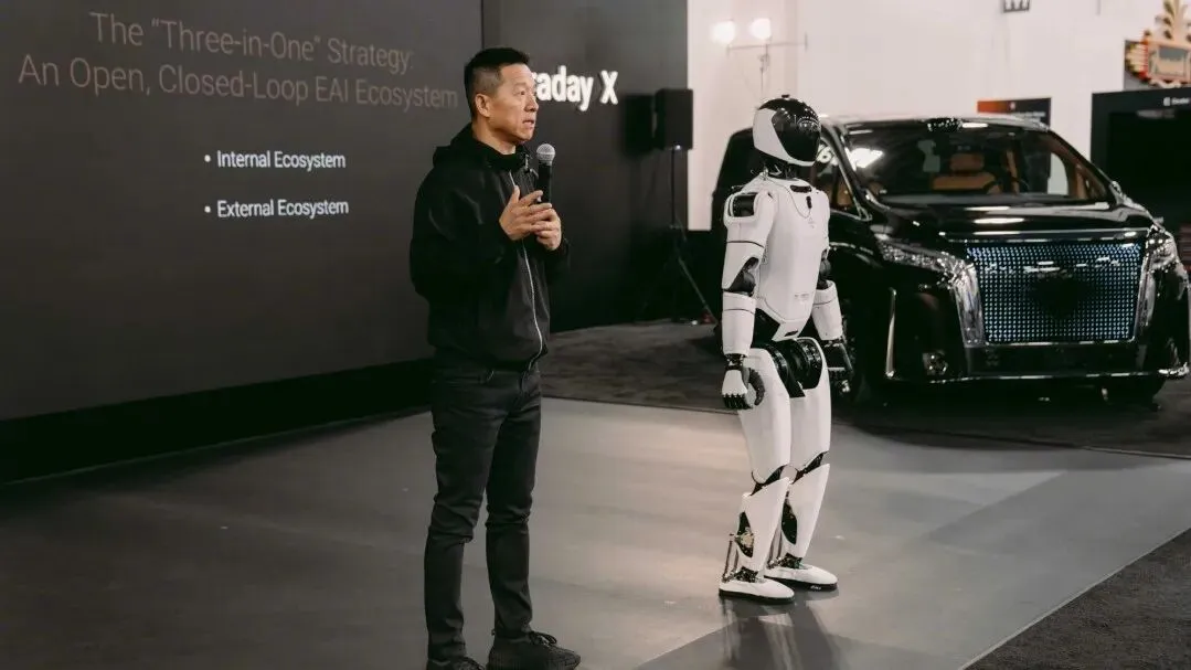 贾跃亭在发布会上提出了"三位一体"FF EAI Robotics生态战略,包括EAI终端、EAI大脑&开源开放平台、以及EAI去中心化数据工厂,试图以"技术+生态"的组合拳,增强市场信心。