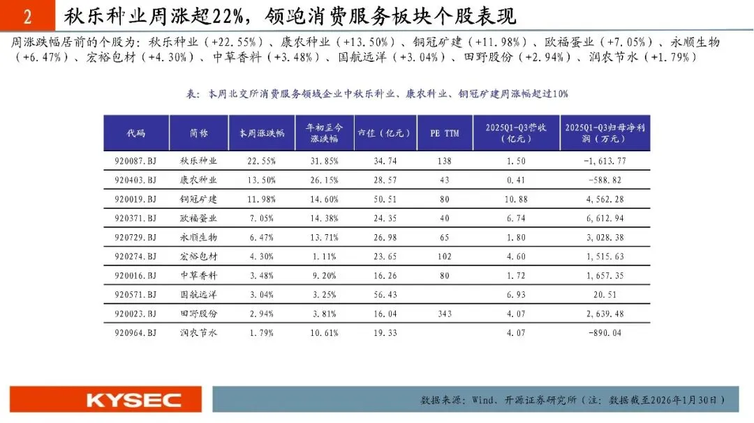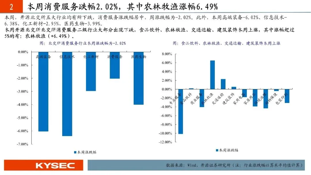 · 本周北交所消费服务涨幅2.03%,其中专业服务涨幅4.33%