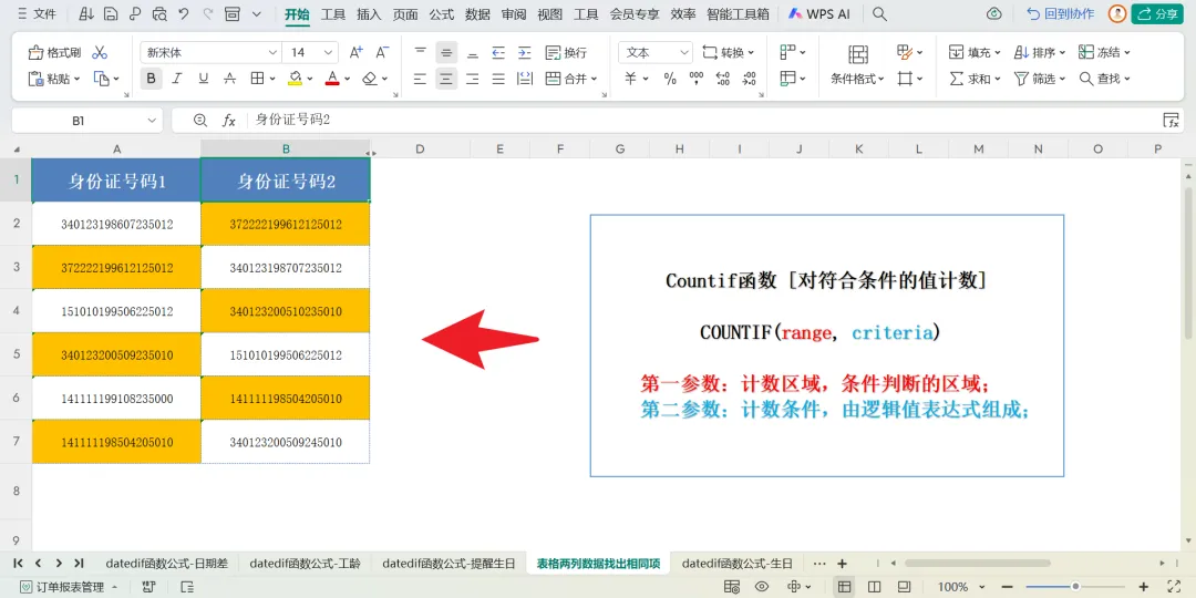 Countif函数是Excel和WPS表格中一个非常实用的函数,它可以根据指定的条件对单元格区域进行计数。利用这个函数,我们可以轻松找出两列数据中的相同项,而且完全免费!
