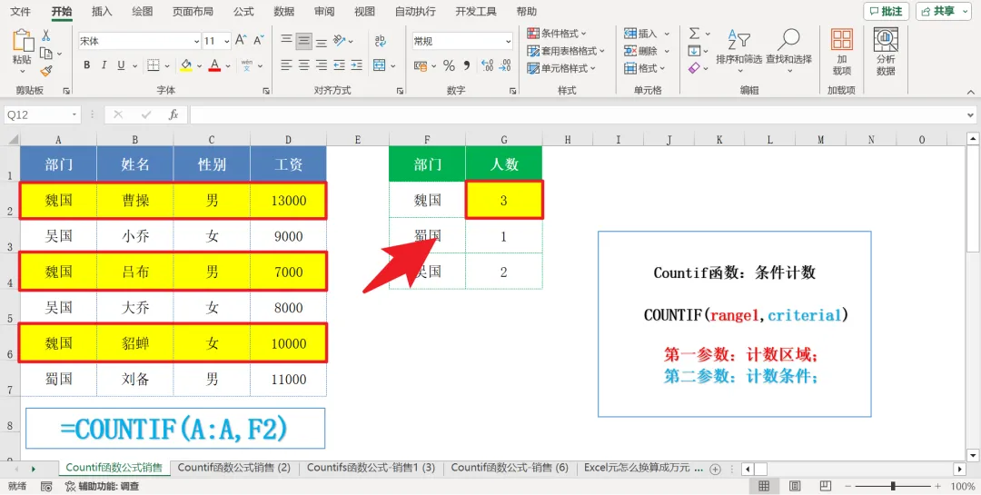 为了更好地掌握Countif函数,表姐再来详细解析一下这个函数的用法。Countif函数的语法结构非常简单:COUNTIF(区域, 条件)。其中,“区域”是指定要进行计数的单元格区域,“条件”是指定计数的条件。