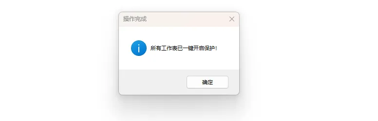 5.稍等片刻,会弹出 “所有工作表已一键保护!” 的提示框,点击 “确定” 即可。