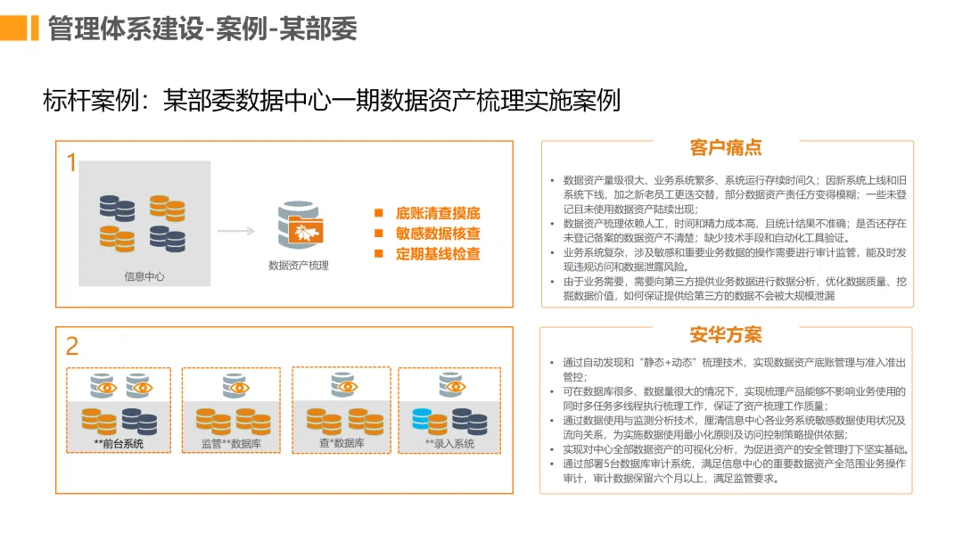 方案通过数据资产梳理、分类分级、权限管控等管理手段,结合数据库审计、脱敏、加密等技术工具,搭建统一MDM主数据管理平台,实现主数据“一处维护、多处共享”。同时构建安全监控与运营体系,覆盖数据采集、存储、传输、使用全场景,通过实时监测、风险告警、应急处置等机制,防范数据泄露与违规访问。针对制造业特点,差异化设计主数据管理模式,规范编码与属性标准,打通PLM、SAP等系统数据壁垒,同步完善安全管理制度与流程。