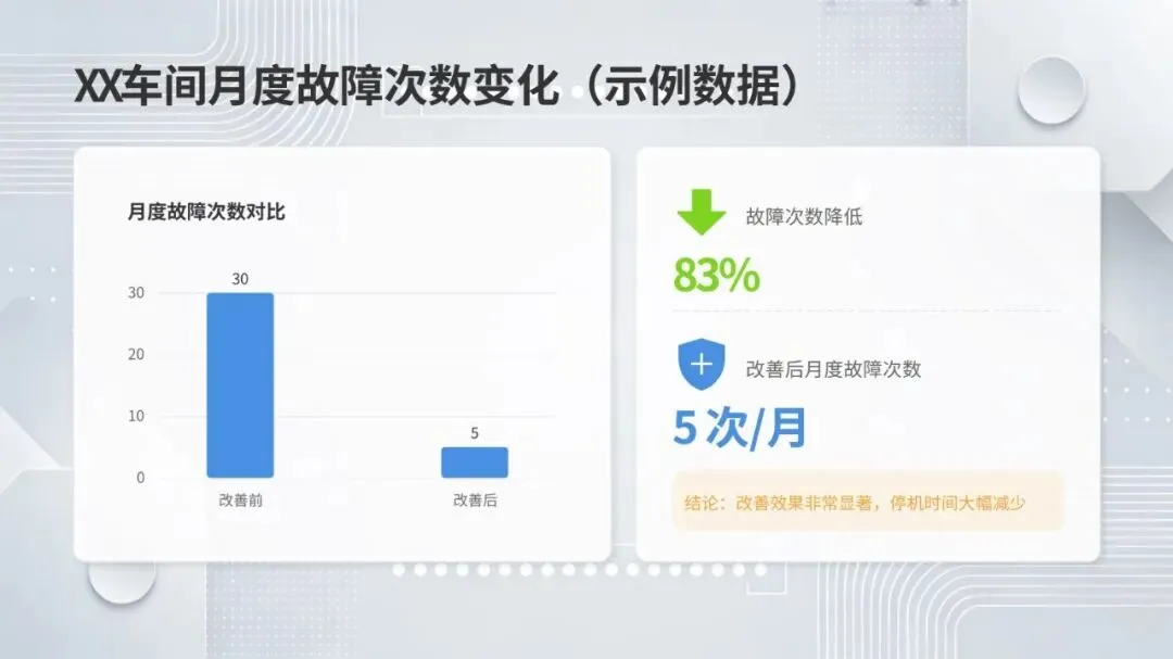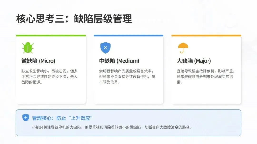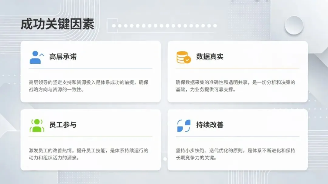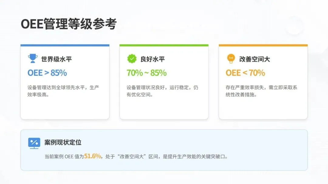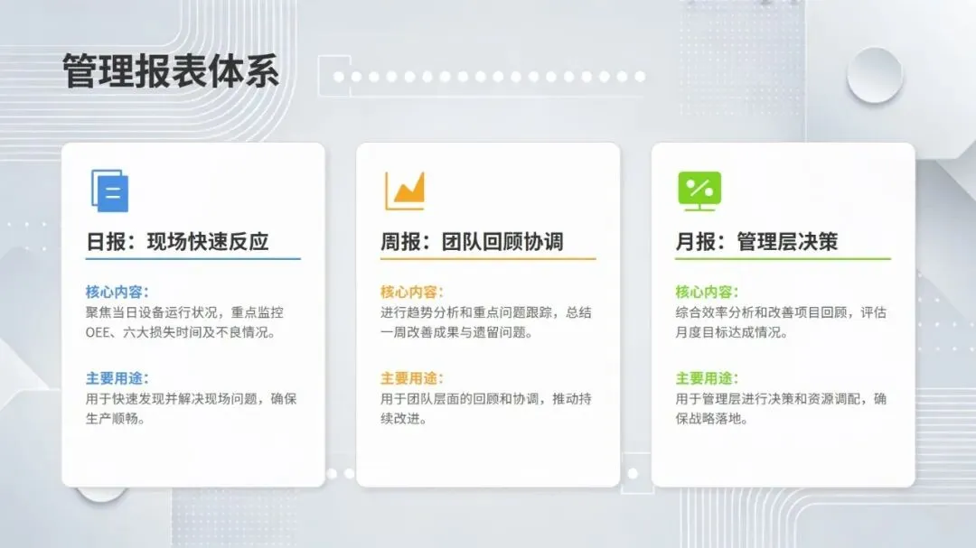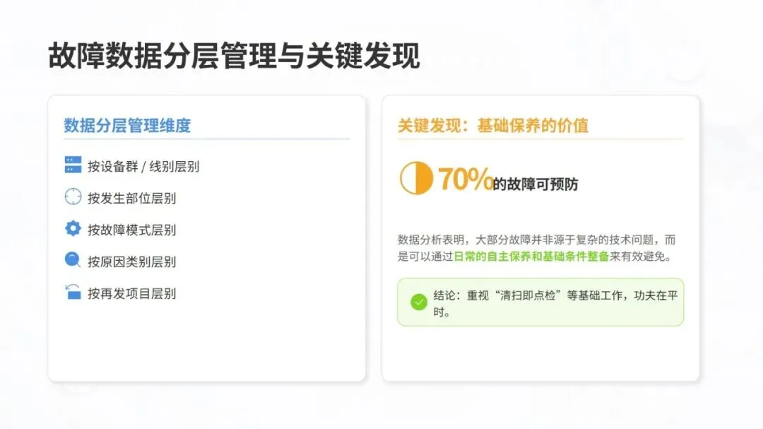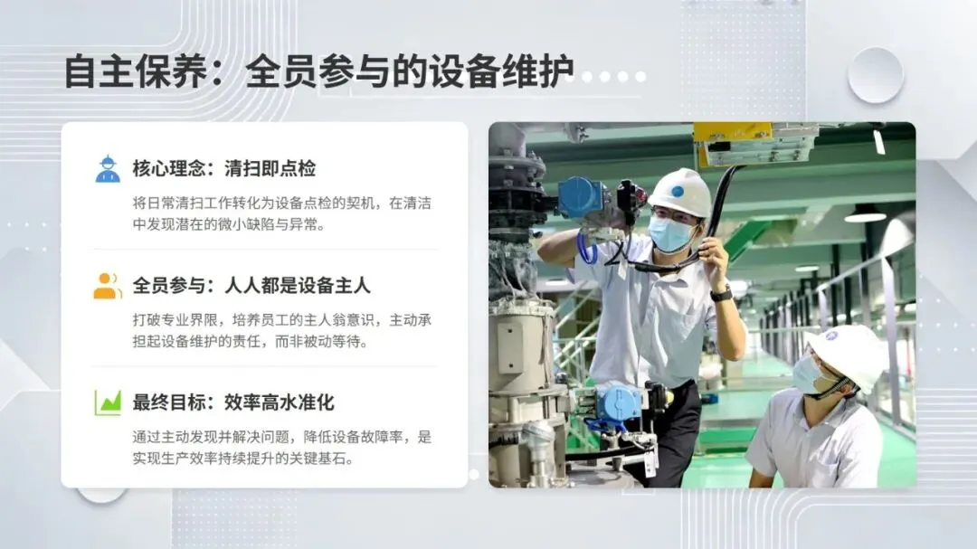同时,体系强调数据驱动与跨职能协作,构建从设备层到工厂层的全层级数据采集与报表体系,搭配组织保障与技能认证机制,形成 “预防为主、全员参与、持续优化” 的管理闭环。该体系不仅有效解决设备自动化背景下的效率损失问题,更推动企业从局部改善走向系统优化,为数字化、绿色化、供应链协同的未来发展奠定坚实基础。