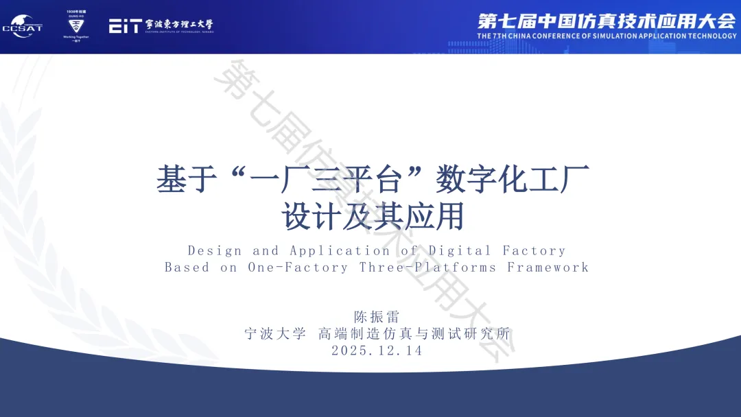 2025年12月13日-14日,第七届中国仿真技术应用大会在浙江省宁波市成功举行,本次大会主题为“AI 赋能与数字孪生:驱动高端装备智能设计革新”,大会分为开幕式、主论坛、8个分论坛、专业展览、参观活动等。100多位专家分享了最新的科研成果和学术观点。“仿真生态圈”持续刊发部分专家的演讲PPT,推动技术交流、产业合作,促进行业生态建设。专家简介:陈振雷,宁波大学海运学院教授、博士生导师,美国伊利诺伊大学工学博士,国家QR计划特聘专家,曾任美国福特汽车公司发动机事业部高级工程师、三一集团技术总监。研究领域包括发动机、挖掘机、精密机床、无轴轮缘推进器等高端制造数字孪生、多物理量耦合仿真与试验检测技术研究,研究方向包括工程机械结构物及系统的强度与疲劳、流场与性能、振动与噪声的计算机仿真与试验检测,工程问题质量提升与成本控制解决方案,工程机械节能减排解决方案。