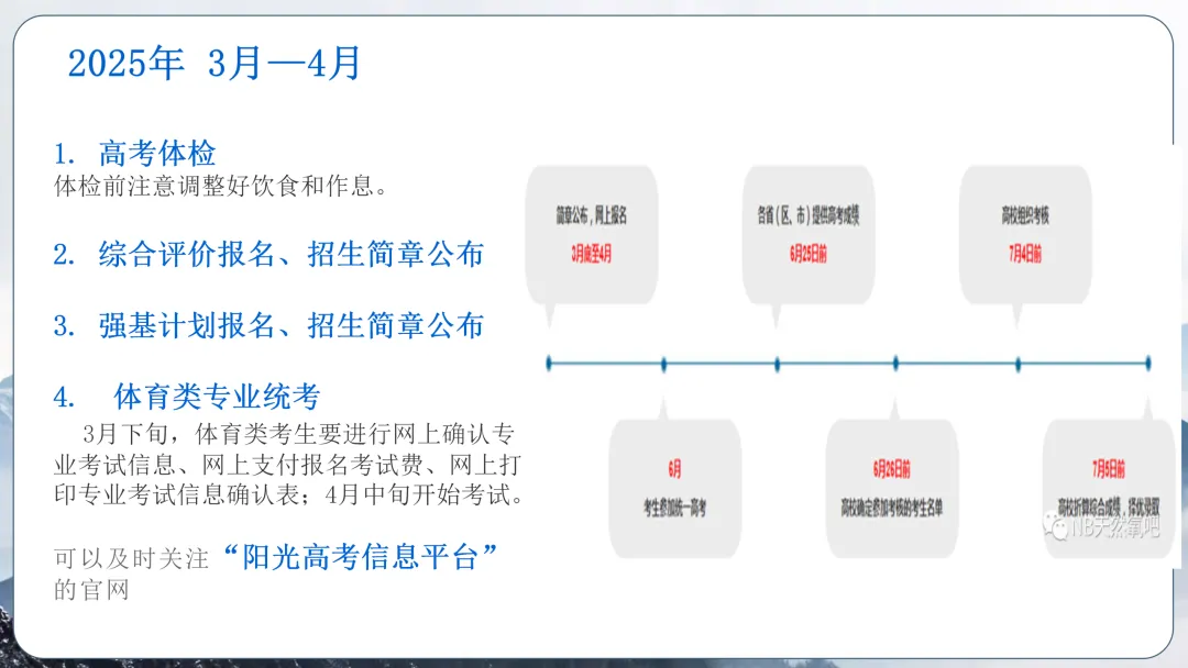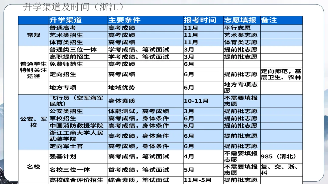 1.普通高考:这是最常见的升学方式,主要依据高考成绩进行录取。报考时间为11月,志愿填报采用平行志愿的方式。