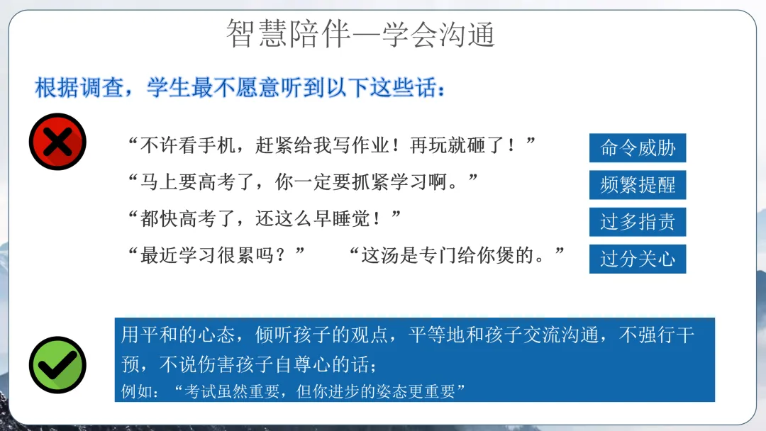 很高兴在这与您相遇,如果您是一位班主任老师,每天除了应对繁重的教学工作,还要加班整理班级、教务、教研、课件PPT资料,请关注下方的“小木教务资料”,让我们风雨同路、一起成长~今天分享的是高三期末家长会的ppt课件和配套的发言稿,主题是《智慧陪伴,护航高考》。