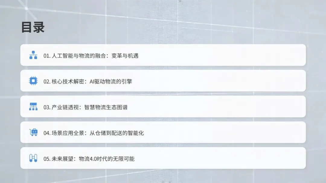 围绕 “人工智能引领物流新时代” 的核心主题展开,深入拆解了 AI 技术给物流行业带来的全方位变革。