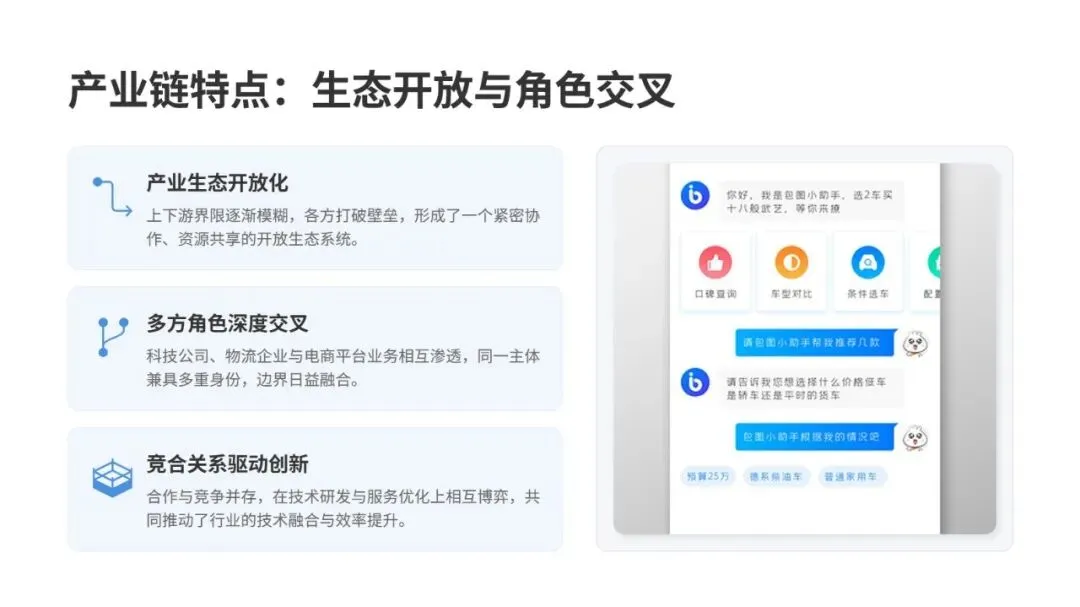深度学习、自动驾驶、计算机视觉与自然语言理解四大核心技术,构成了 AI 赋能物流的底层支撑。对应的产业链也呈现出上下游边界模糊、多方协同创新的开放生态特点。