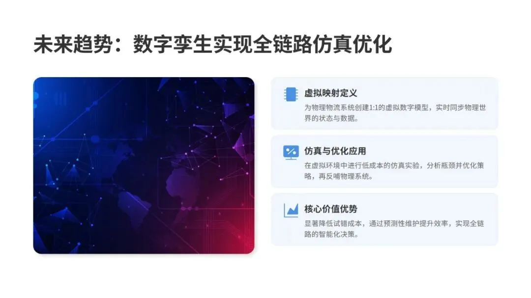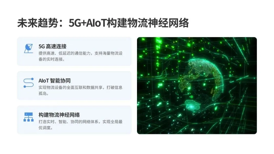 未来,随着 5G 与 AIoT 技术的深度融合,数字孪生与绿色智能物流有望成为行业发展的核心方向,推动物流全链路向更高水平的智能化迈进。