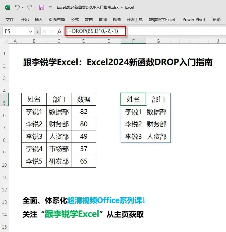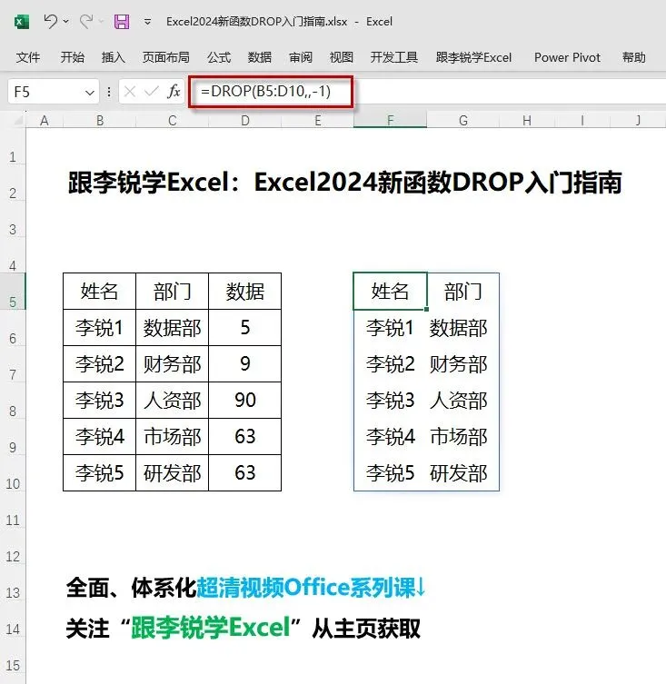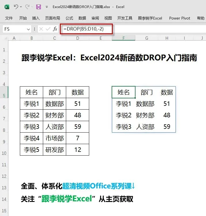 Excel 2024新增的DROP函数,可以帮你从数组的开头或结尾删除指定数量的行或列。