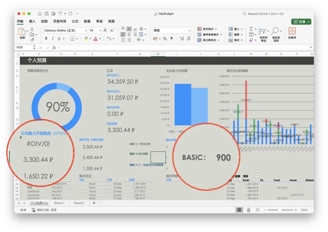 如果你观察仔细,会发现在我的表格里,我把次日开支的弹性额度和基础支出额度字体进行了放大。