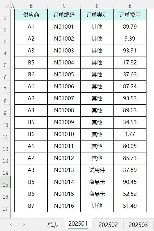 需要将3个月的明细,按类别进行汇总到总表里面。