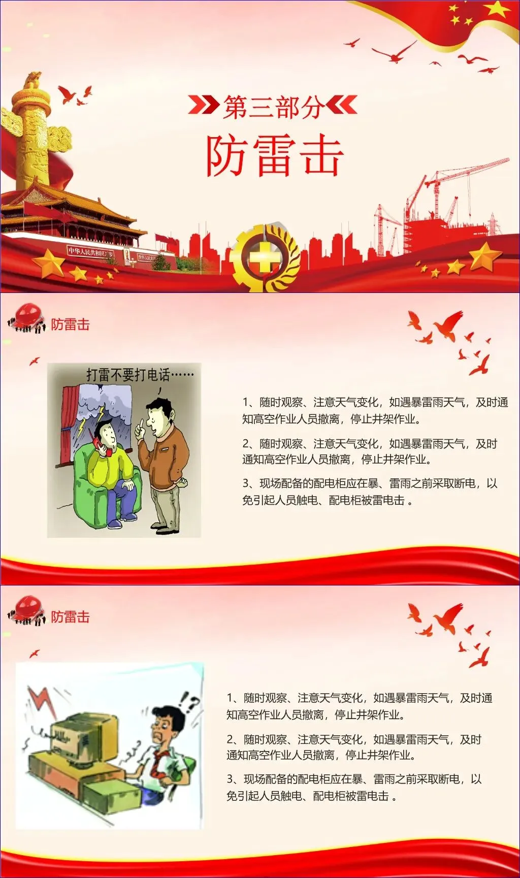 雷暴天气及时通知高空作业人员撤离,停止井架作业;