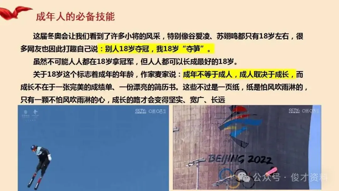 高中生成人礼主题班会ppt:成长承责,逐梦十八.(含视频)