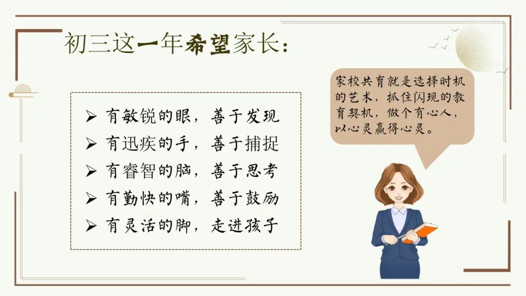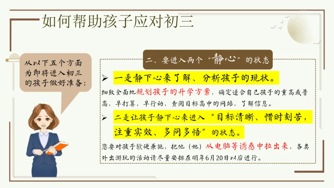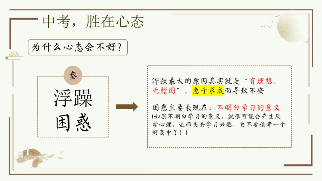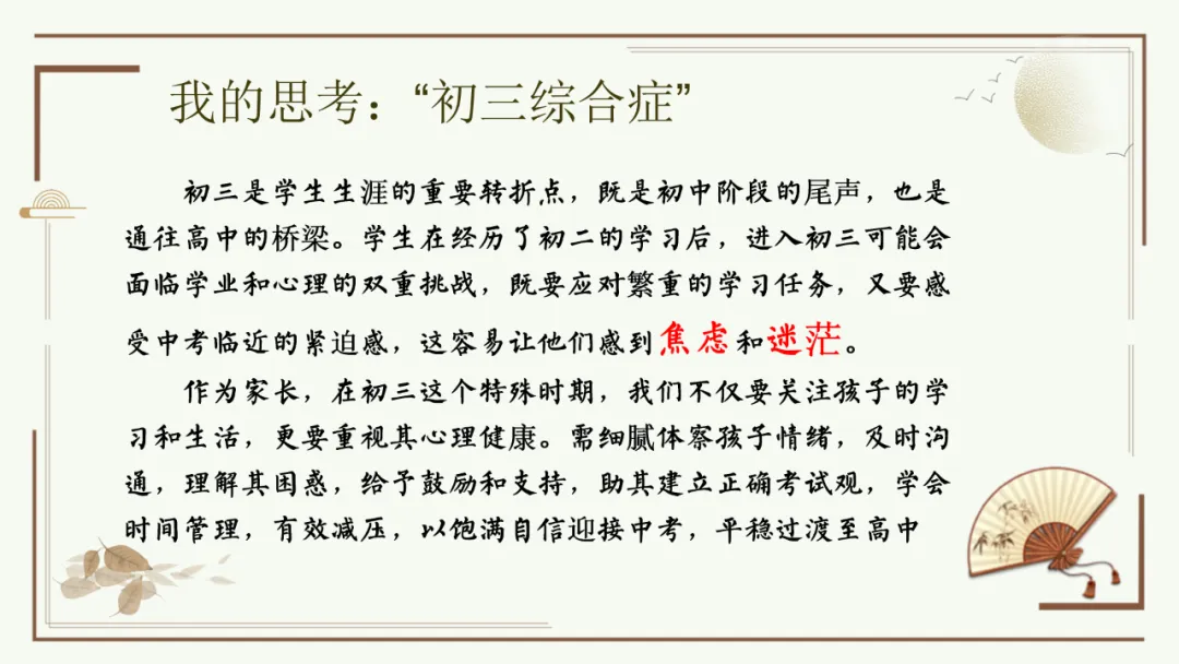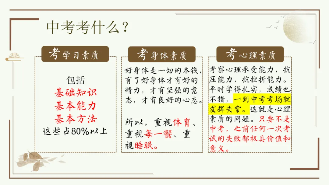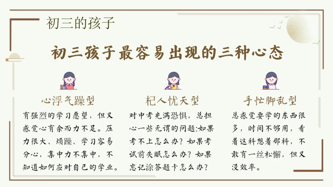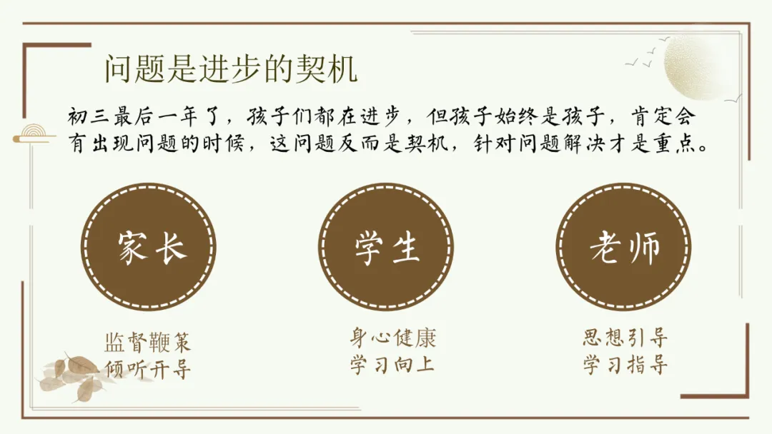 今天给大家分享优秀班主任开家长会的课件,主题是《胜在心态 赢在中考》。加入自己的一点小创意,仿佛给家长注入了新的血液,开得很成功。