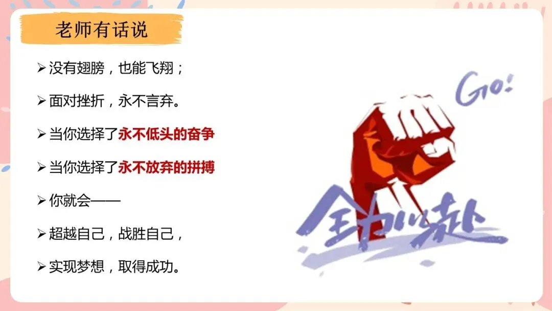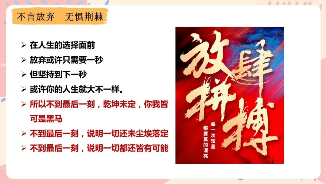 励志教育主题班会ppt:纵有疾风,不言放弃.(含视频)
