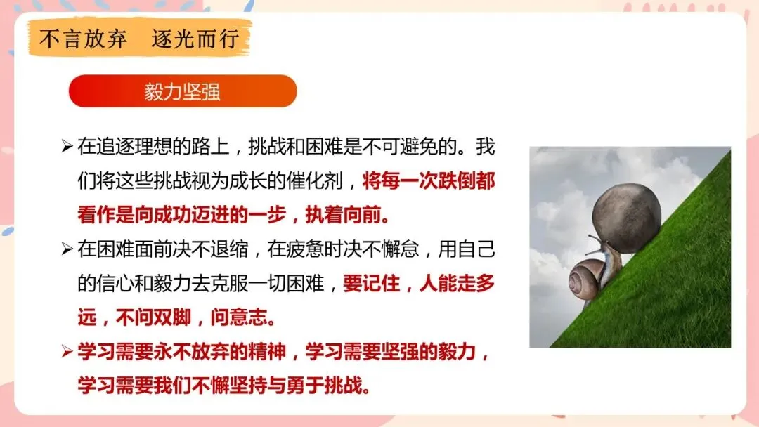 励志教育主题班会ppt:纵有疾风,不言放弃。