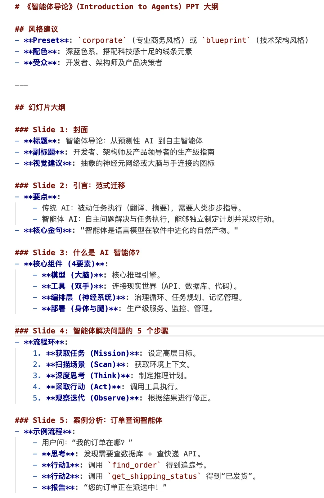 1.解析 PDF:使用 pdf Skill 提取 Introduction to Agents.pdf 的全文内容。