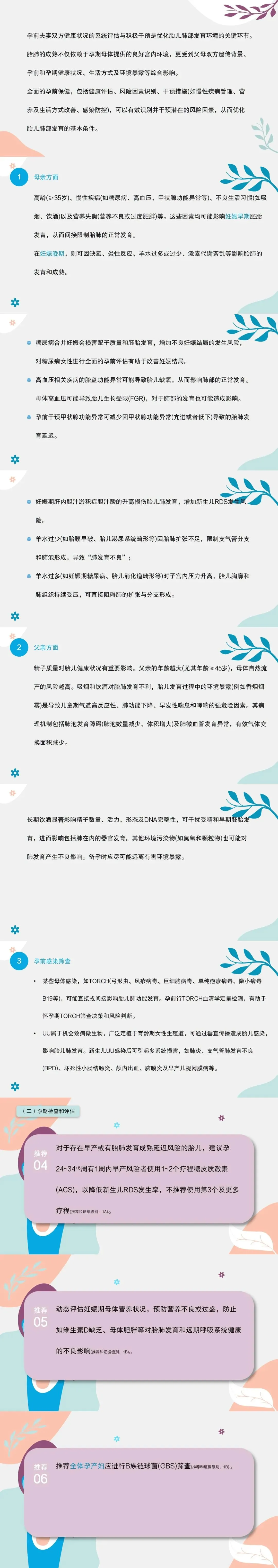 1.建议在孕前有效控制女性糖尿病、高血压及甲状腺功能异常等基础疾病,有助于降低妊娠并发症的发生及其对胎肺发育的影响。