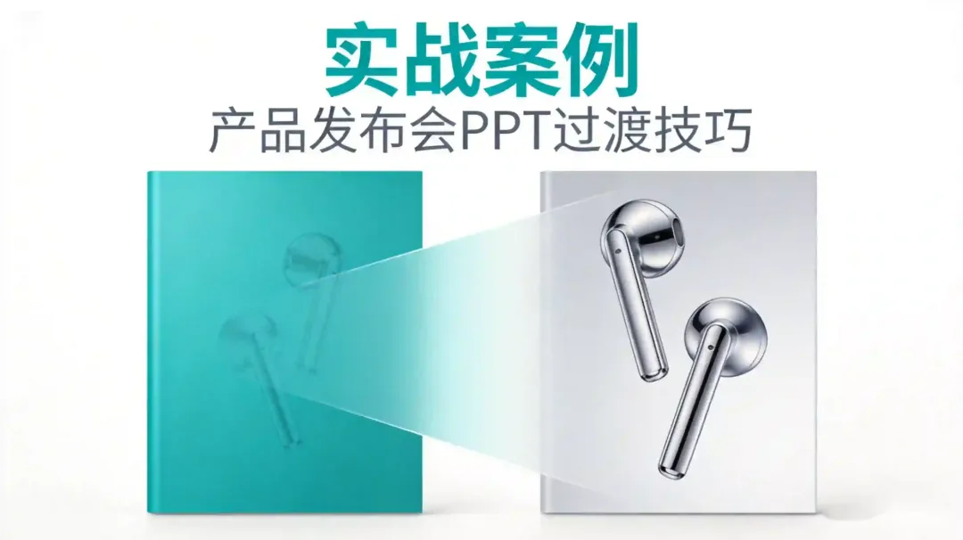 当我们为多个对象命名相同的“!!”前缀时,PowerPoint会将它们视为独立的对象,但会同步执行平滑过渡。这样我们就可以实现多个对象协同的复杂动画效果。这个技巧非常适合用于展示系统的工作原理、团队的协作流程或者项目的执行步骤。比如你可以用圆形代表“输入”,用三角形代表“输出”,通过平滑切换展示系统从输入到输出的工作流程。说了这么多理论,我们来看一个实际的案例。下面这个案例展示了如何用平滑切换制作一个产品发布会的PPT。- 封面页:用平滑切换展示产品的logo从模糊到清晰的过程