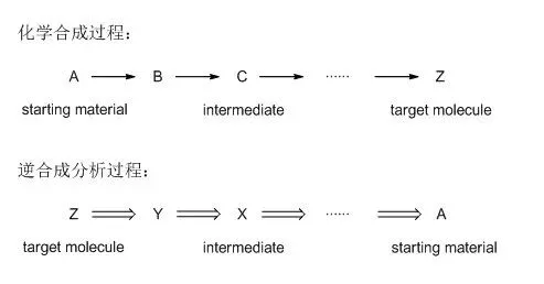 逆合成分析法的突出特征是逆向逻辑思维,从复杂的目标分子推导出简单的起始原料的思维过程,与化学合成的实际过程刚好相反,因此被称为“逆”合成,或“反”合成。