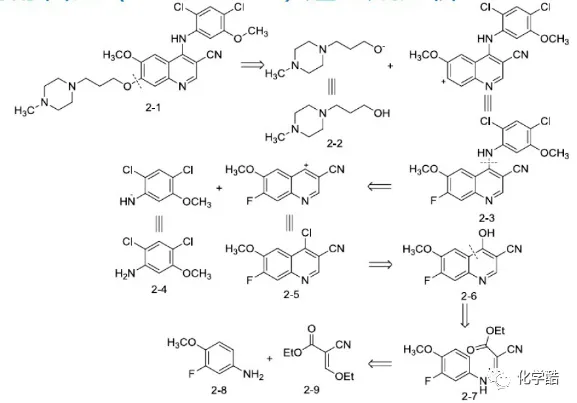 逆合成分析的过程可以简单地概括为:以目标分子的结构剖析为基础,将切断、确定合成子、寻找合成等价物三个步骤反复进行,直到找出合适的起始原料。