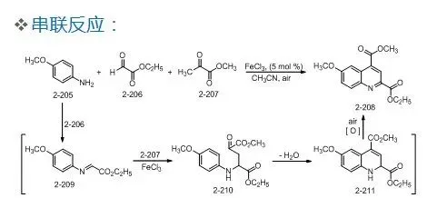 串联反应是指将两个或多个属于不同类型的反应串联进行,在一瓶内完成。