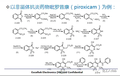 从技术的角度分析,优化合成工艺路线的主要特点可概括如下:汇聚式合成策略、反应步骤最少化、原料来源稳定、化学技术可行、生产设备可靠、后处理过程简单化、环境影响最小化。以上特征,是评价化学制药工艺路线的主要技术指标。