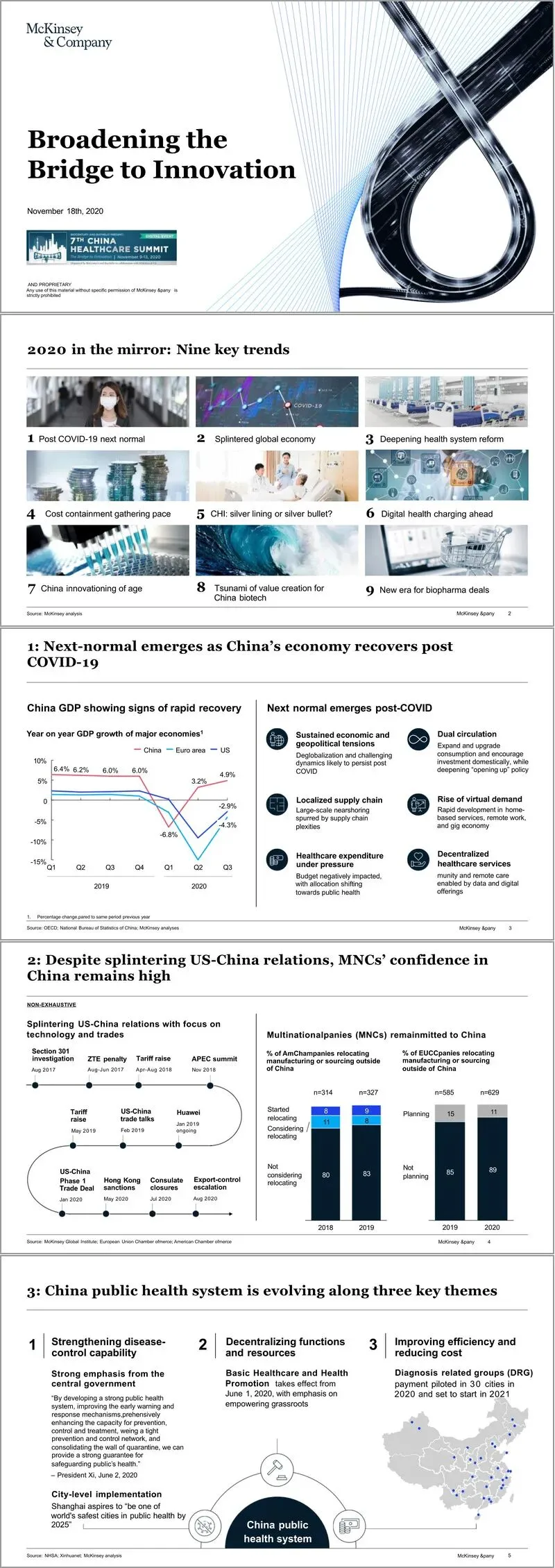 本报告由麦肯锡于2020年11月发布,题为“拓宽创新之桥”,旨在深度剖析中国医药创新生态系统的演进轨迹、当前市场动态以及未来战略方向。文件通过详实的数据和趋势分析,描绘了一幅后疫情时代中国医药行业在政策、资本、研发、商业化及数字化等多维度交织下的复杂图景,并为各类市场参与者提供了关键的战略思考。