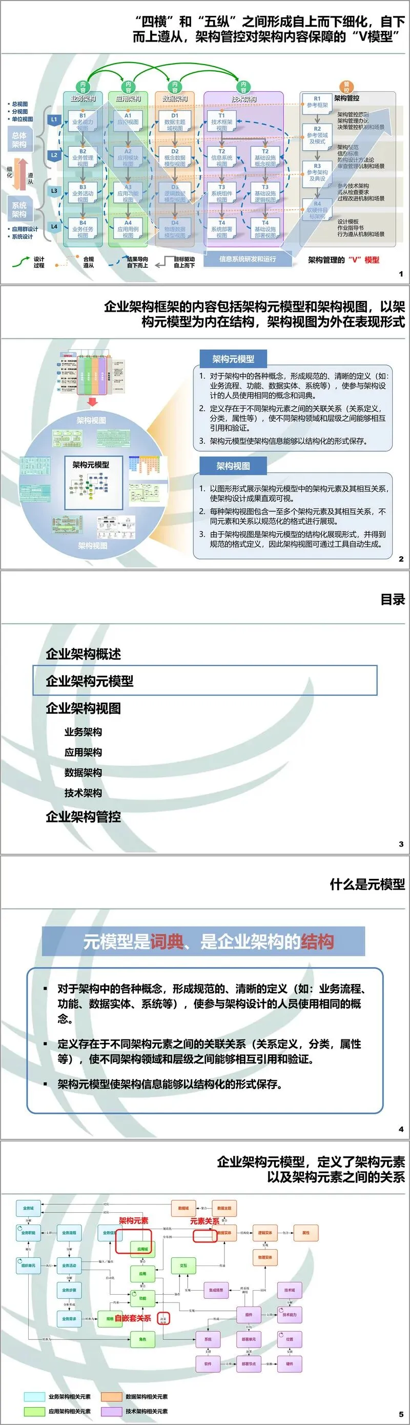 总而言之,这份资料提供了一套极具实践指导意义的企业架构全景图。它通过元模型与视图相结合的方式,将战略、业务、应用、数据和技术有机地融为一体,并辅以科学的管控体系,为企业的数字化转型规划、设计和治理提供了清晰的方法论和工具集。