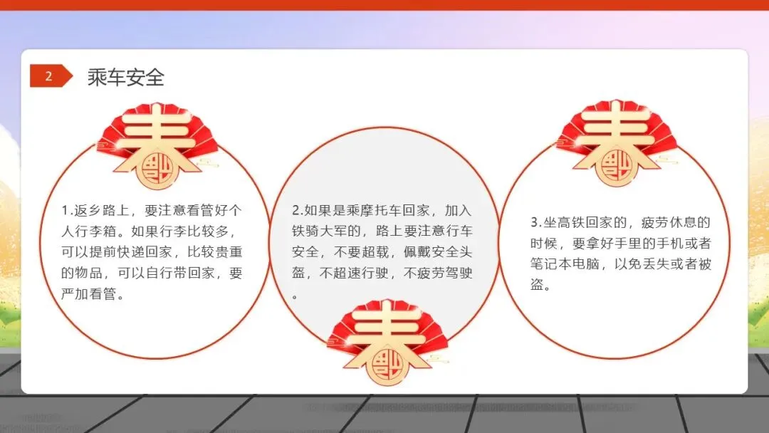 为护航万家团圆,助力企业及个人平安迎新年,“安全航行”特别整理汇总了一份《节前培训节后复工课件系列【第3套】春节节前节后课件》,从网络精心搜集并分类整合了72个实用、即用的安全教育培训课件,涵盖节前隐患排查、出行安全、居家消防、应急处理、复工复产等重点场景,助你系统筑牢节日安全防线。