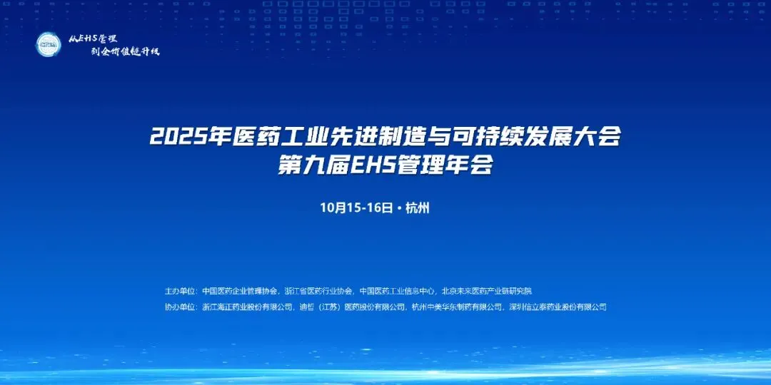 i. 通知∣2025年医药工业先进制造与可持续发展大会暨第九届EHS管理年会:10月15~16日相约杭州
