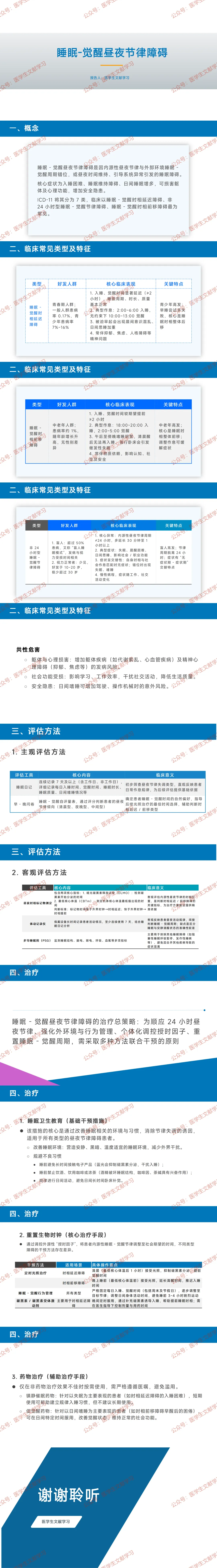 - 定义:内源性昼夜节律与外部环境节律不协调,或节律系统本身异常,导致睡眠 - 觉醒紊乱。