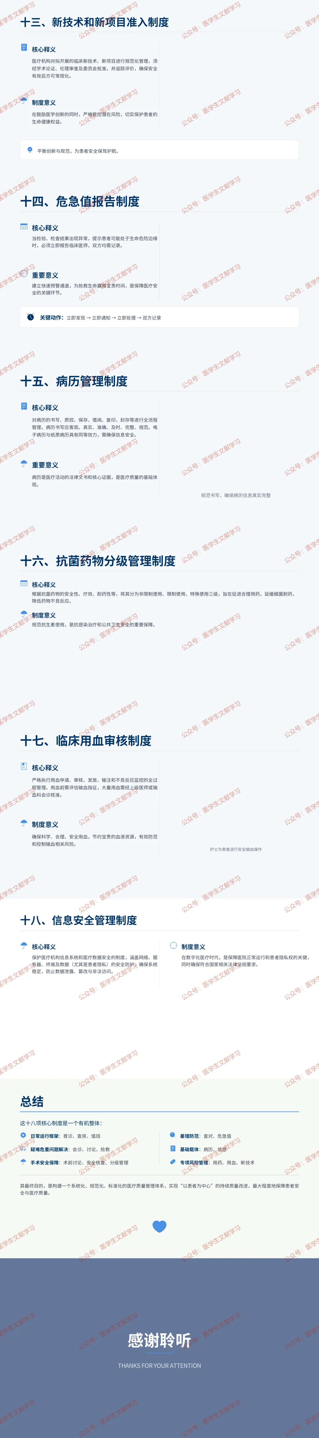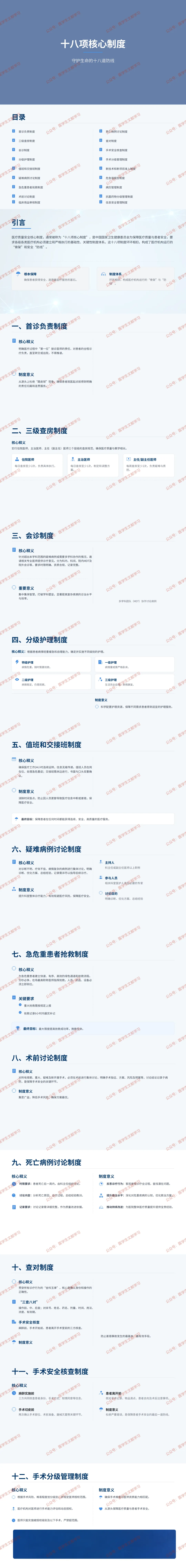 十八项医疗核心制度是保障医疗质量与患者安全的基础性制度体系,环环相扣构成医疗机构运行的 “骨架” 与安全 “防线”,核心目标是实现 “以患者为中心” 的持续质量改进。