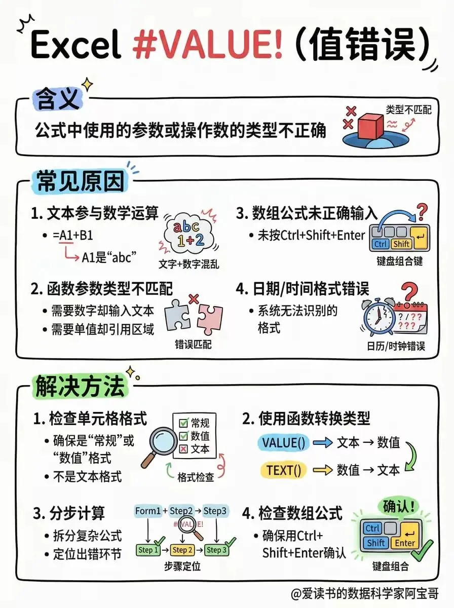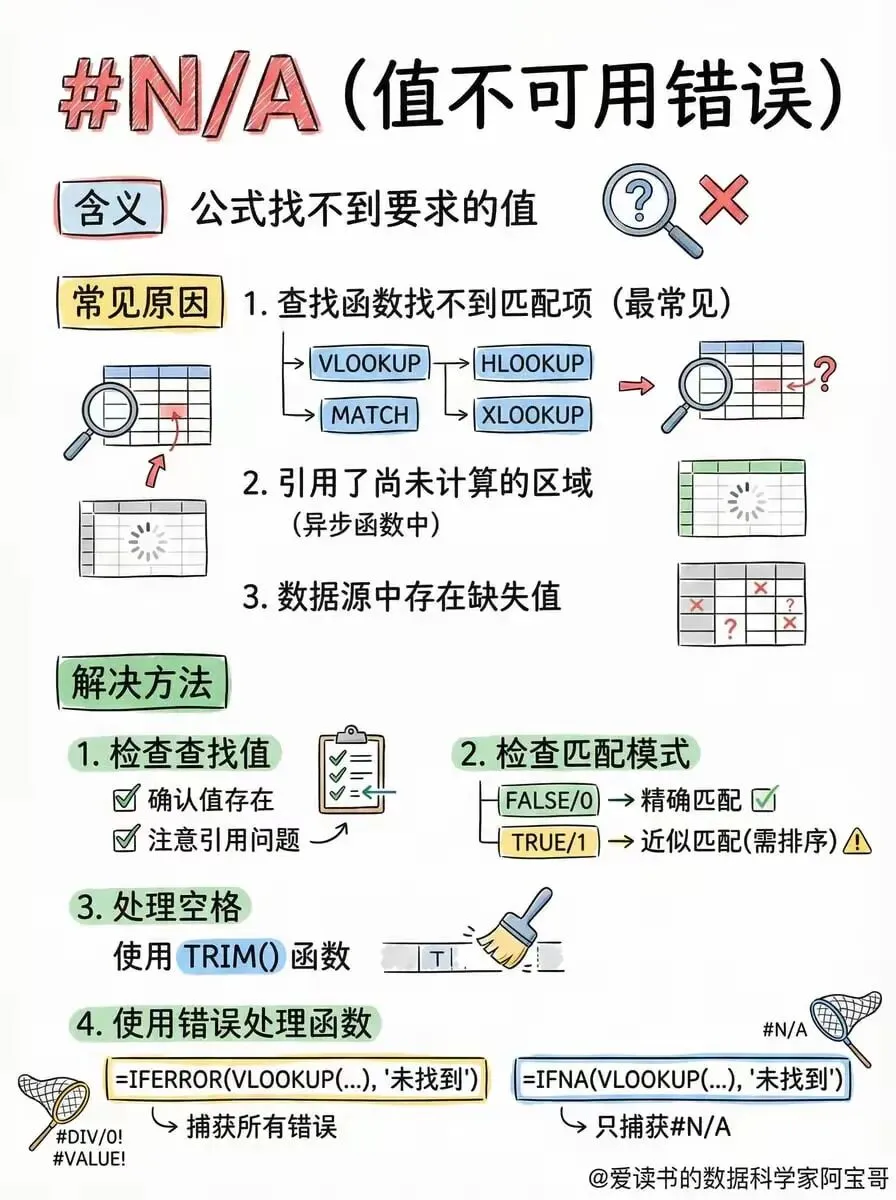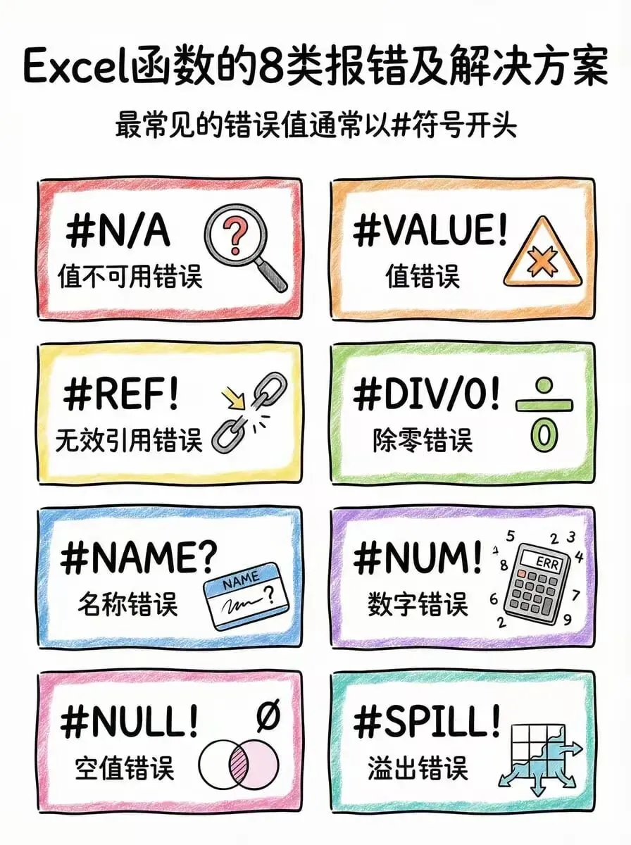 每次被Excel的#N/A、#VALUE!搞崩溃?这篇全网最全错误代码解析+解决方法合集必须收藏!3分钟从报错小白变大神👇 Excel函数的报错 #Microsoft Excel #Excel 使用 #Excel 公式 #Excel 技巧 #excel函数