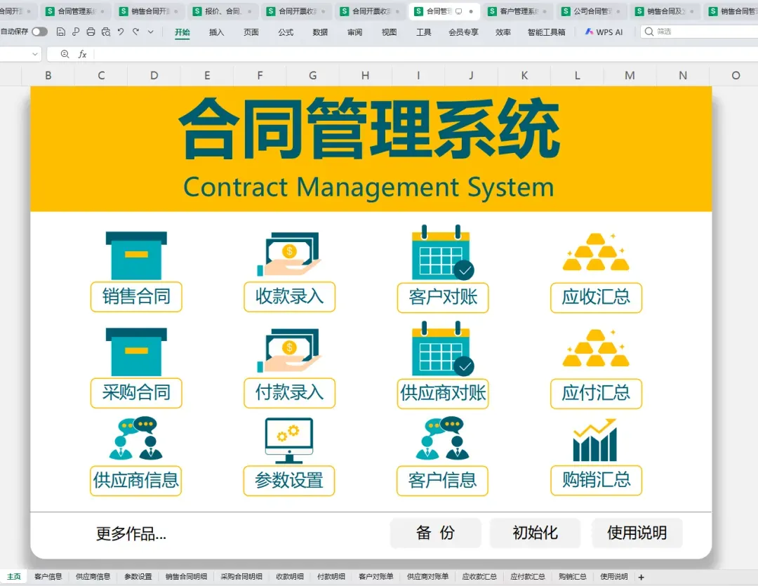 12套合同管理台账excel模板,一键导入数据即可使用!