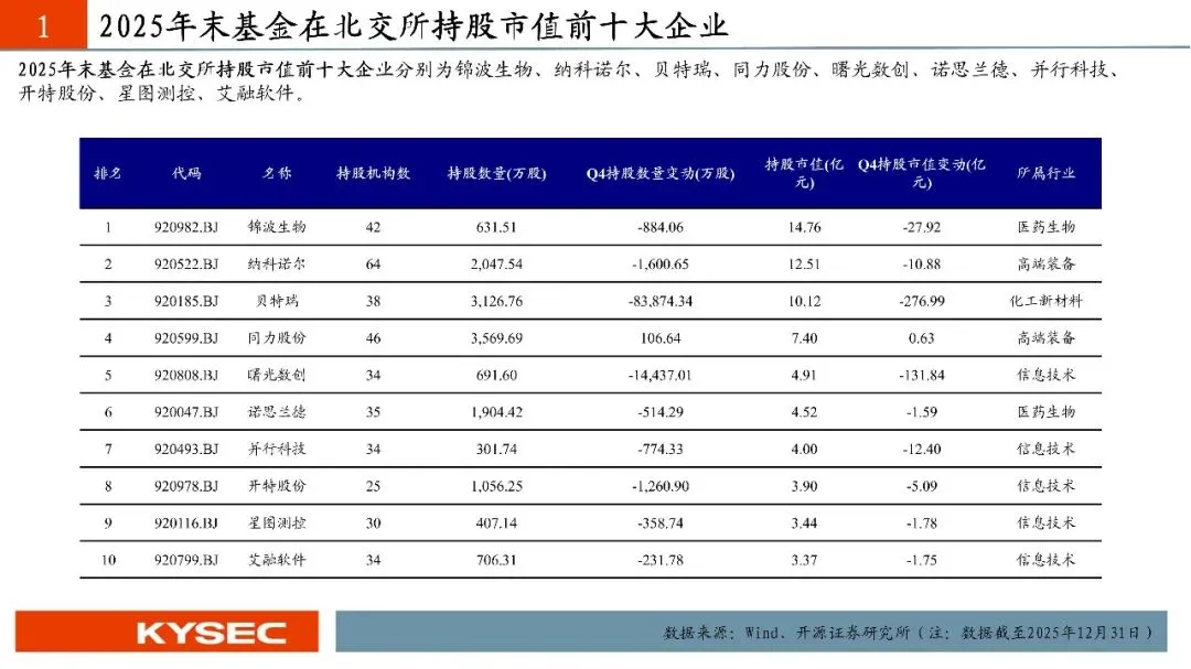 公募参与度持续提升:2024年末配置北交所股票的公募机构达29家,同比+31.82%2025年末增至41家,同比+41.38%