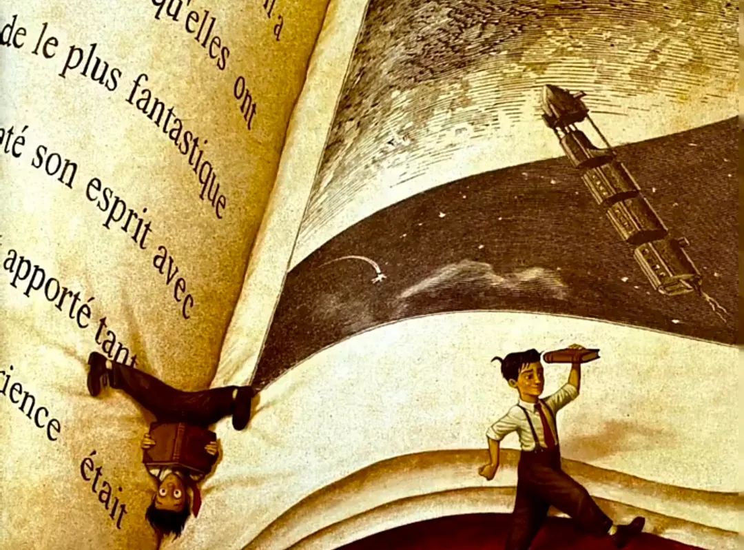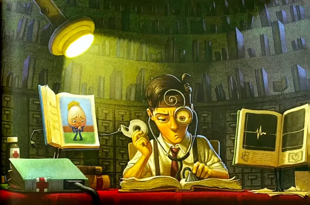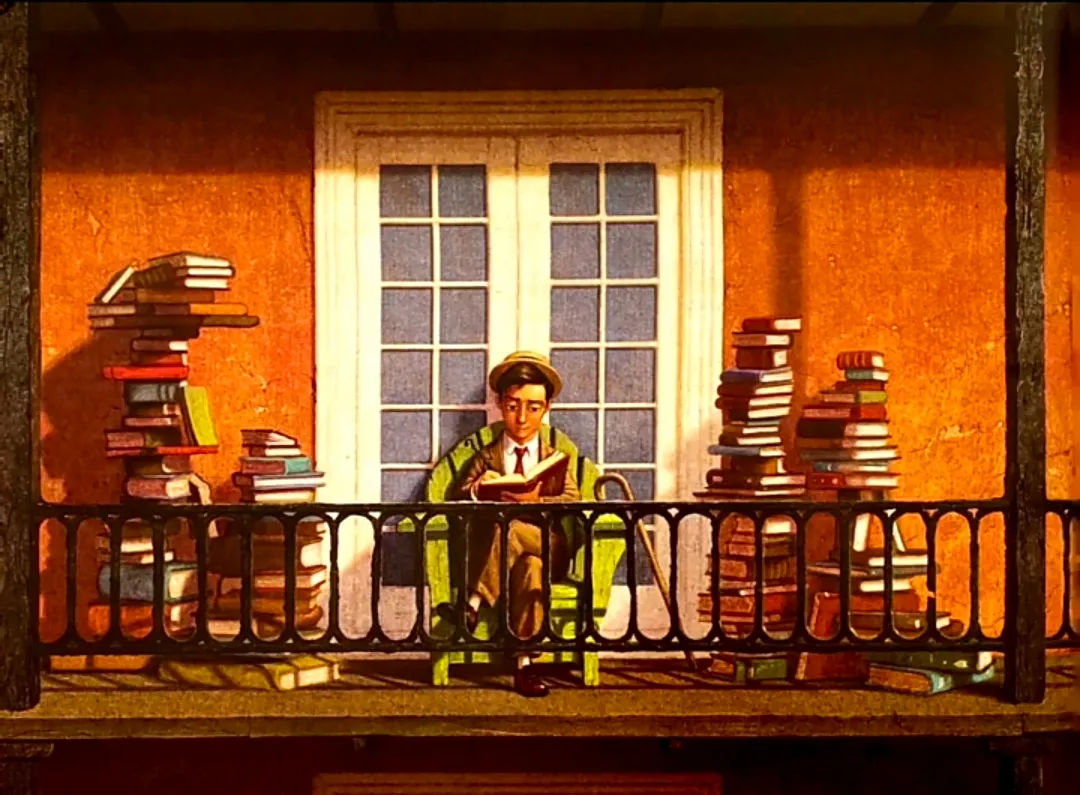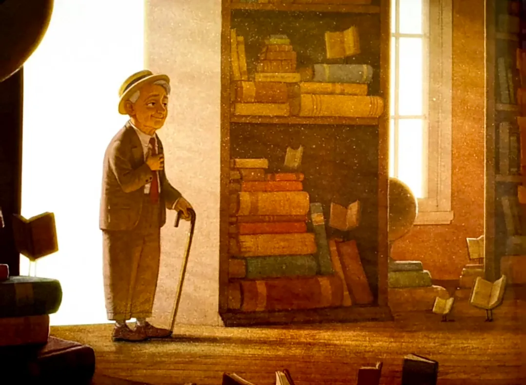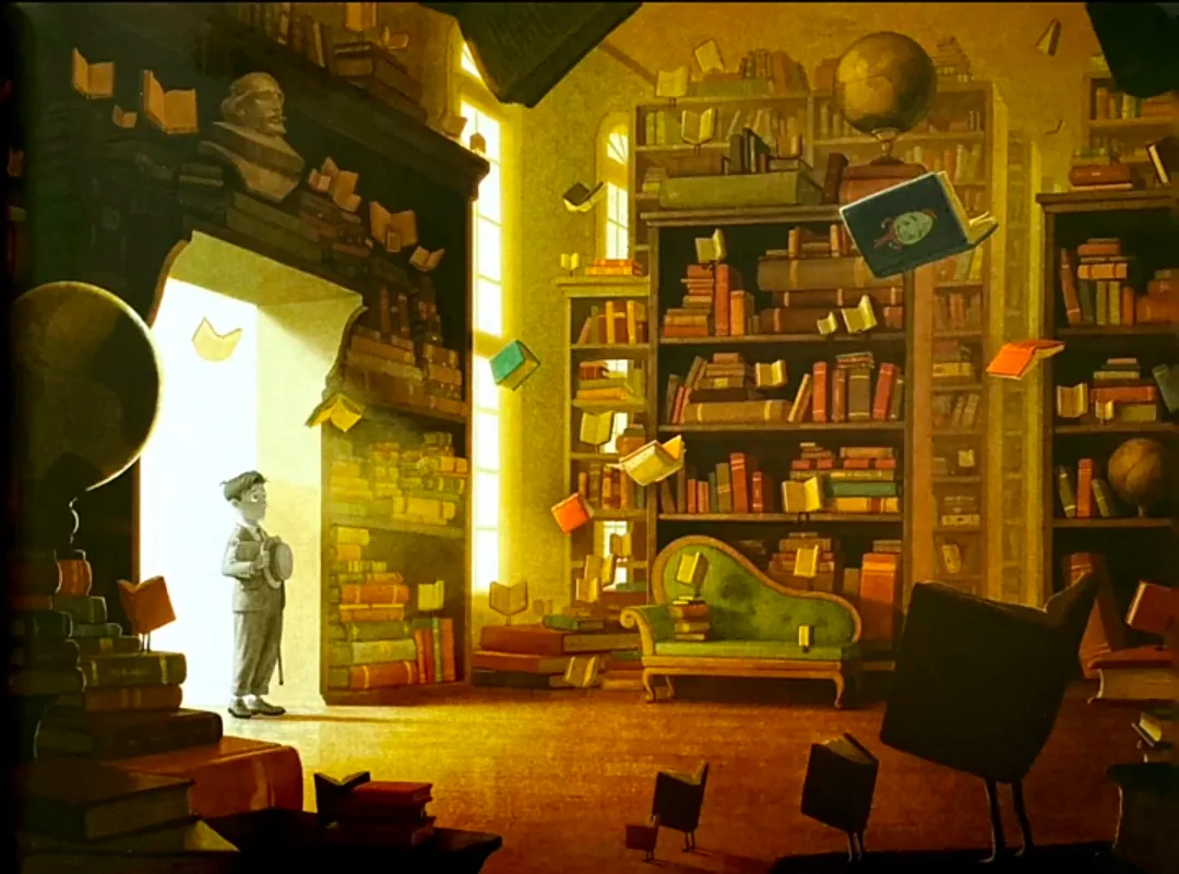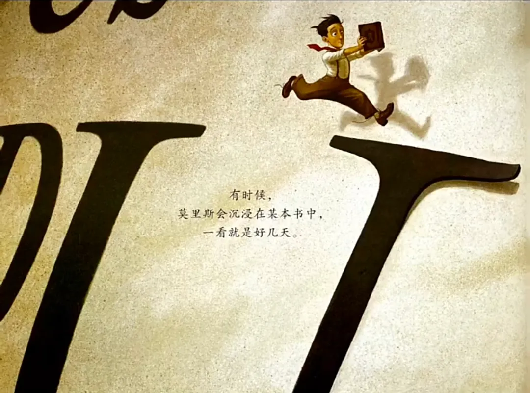 不计其数的书正义飞行充盈其中,千万个故事在窃窃私语,好像每本书都在轻声邀请莫里斯探寻其间。