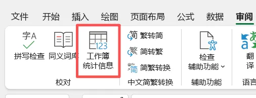 审阅(选项卡)→校对(组)→工作簿统计信息