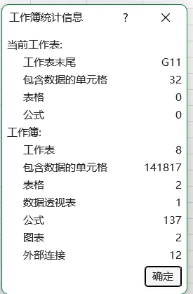 工作簿信息,显示当前工作表的信息、整个工作簿的信息。