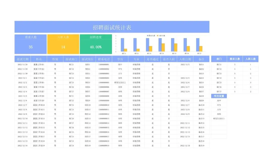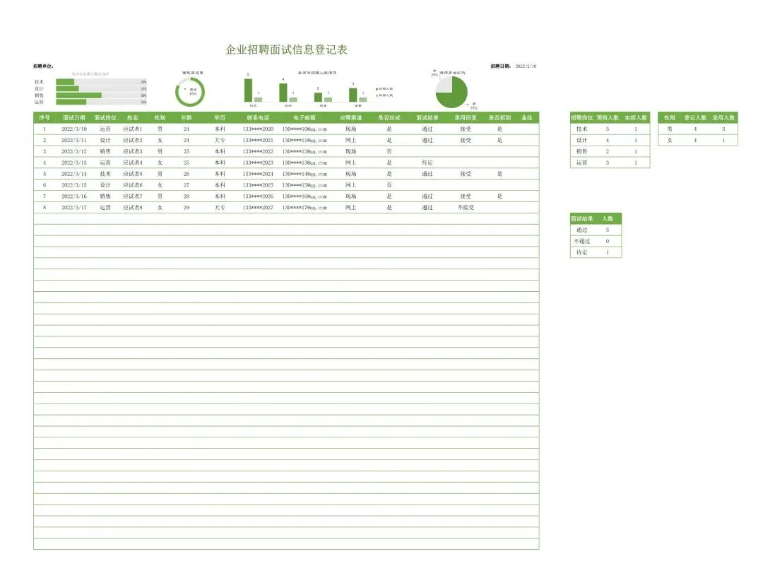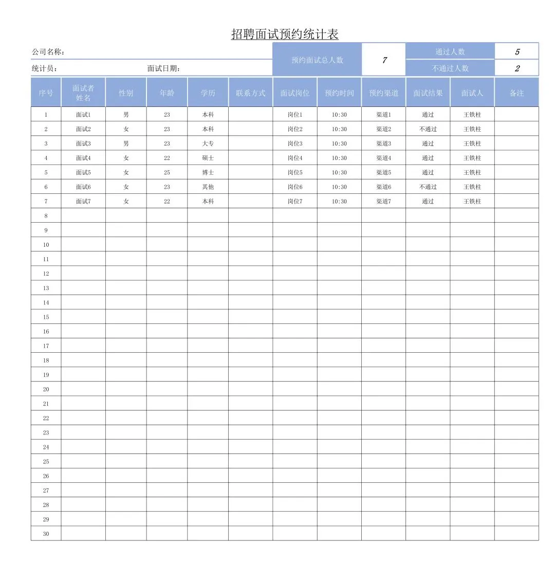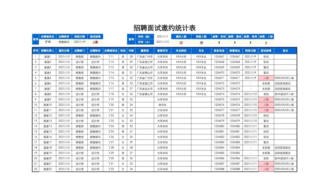 招聘面试数据统计表