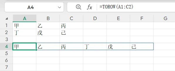 比如这里,就用TOROW函数把二维数组转化成了横向的一维数组。类似的,TOCOL函数可以把二维数组转化为纵向的一维数组。