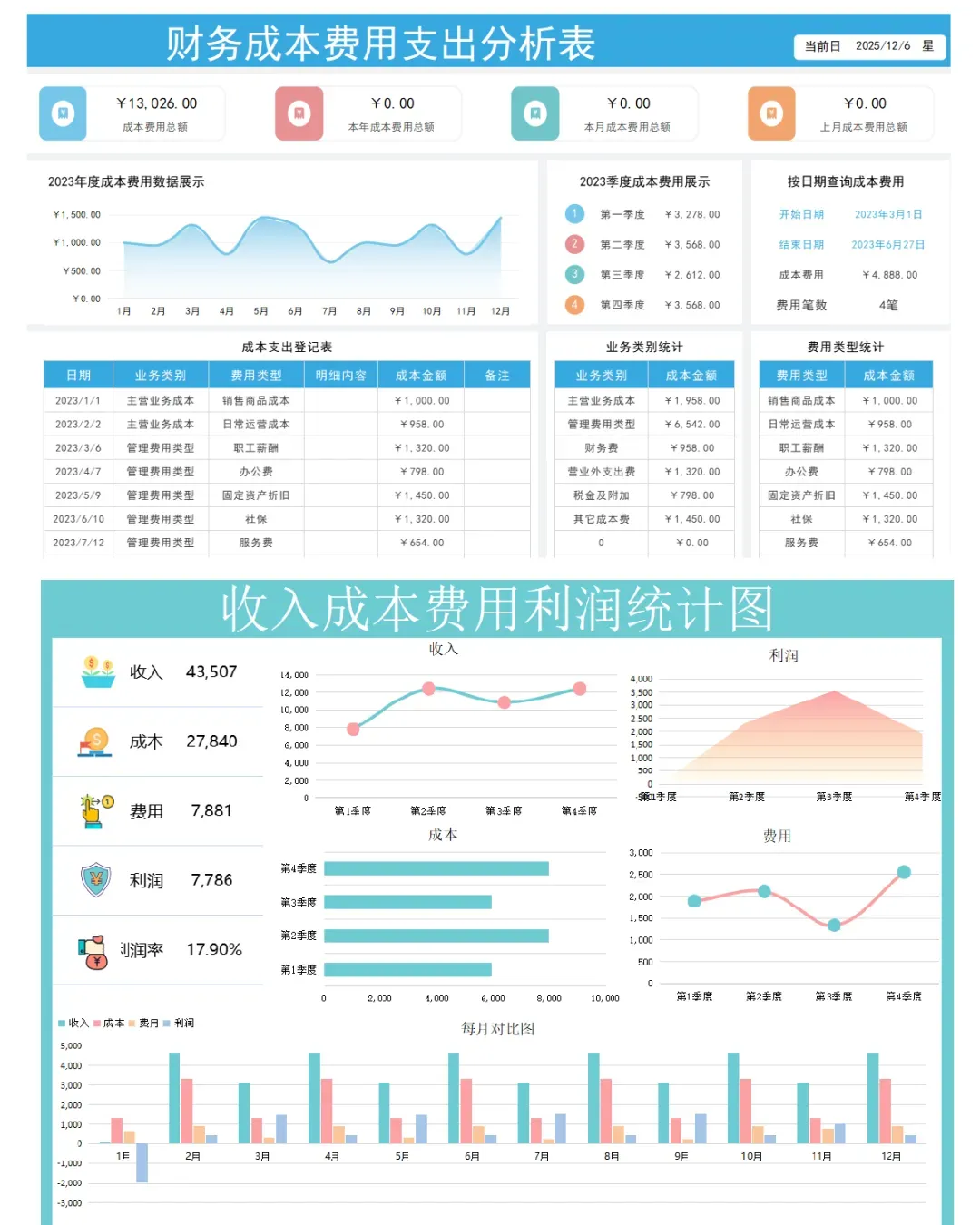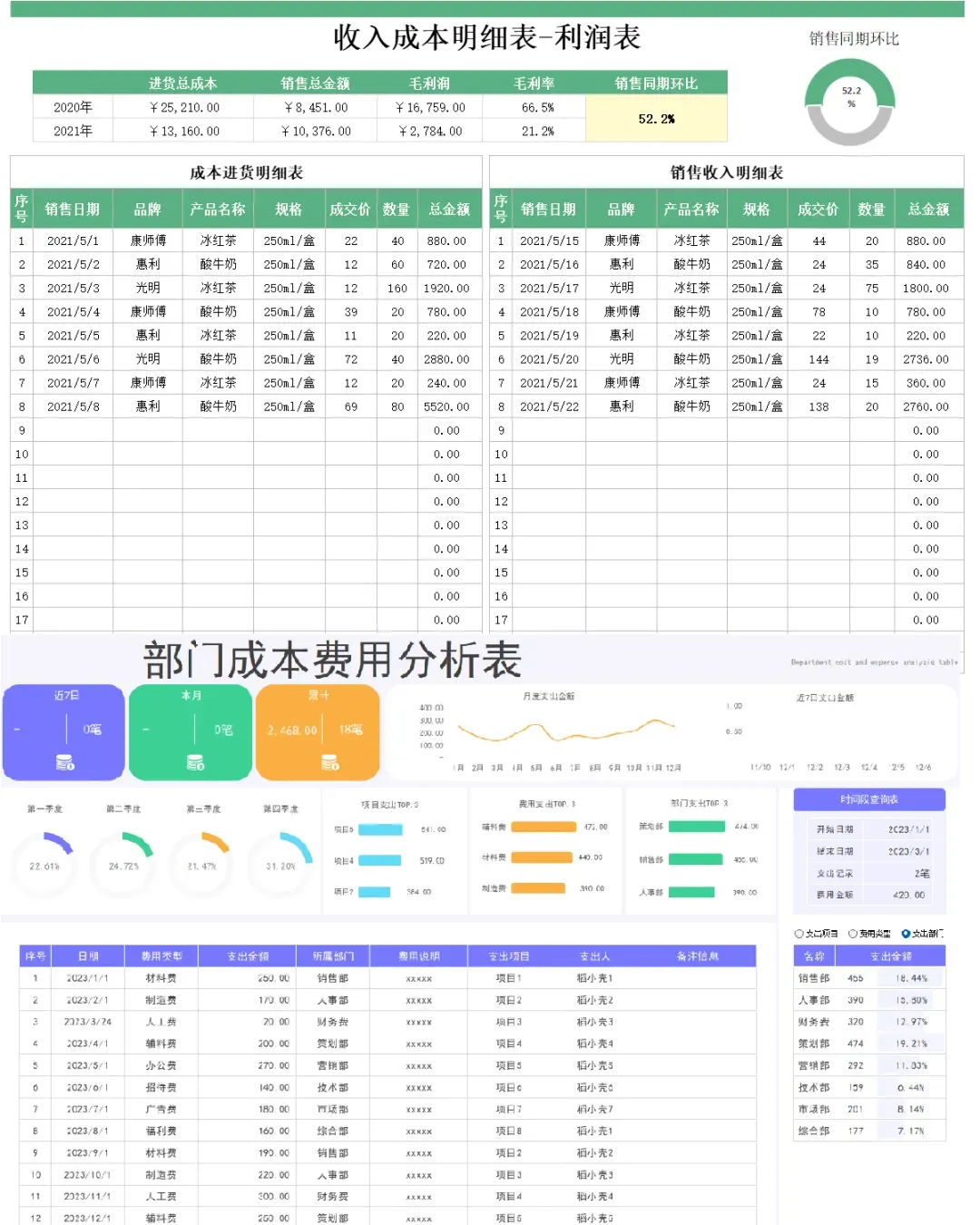 因此,小编在此整理了这套可视化成本核算分析表模板,套用自动进行成本核算分析。具体见下文展示。