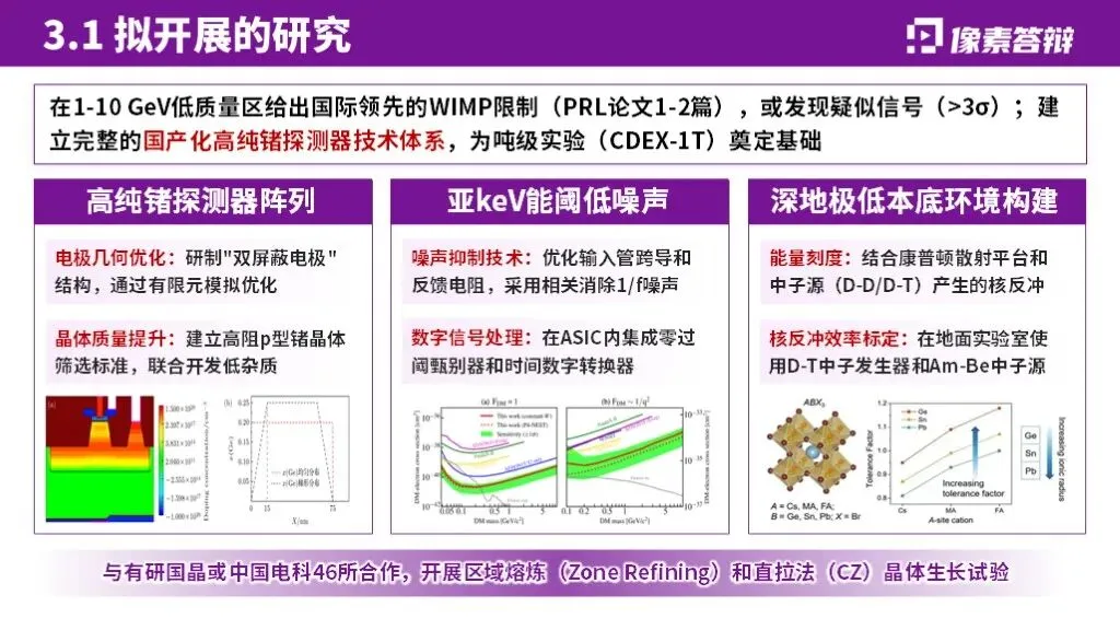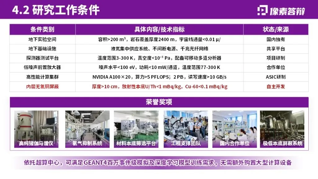 明确拟开展的研究方向,计划在低质量暗物质探测领域取得国际领先成果,并建立完整的国产化技术体系;同时展示现有研究团队、实验平台及设备支持,为项目的顺利实施提供有力保障。