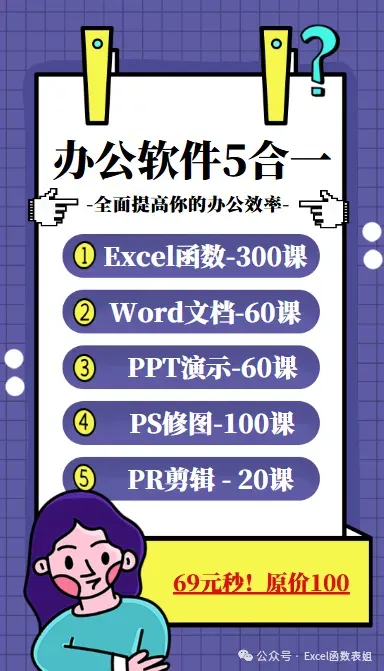 🎯 Excel函数300课 + Word 60课 + PPT 60课 + PS 100课 + PR 20课