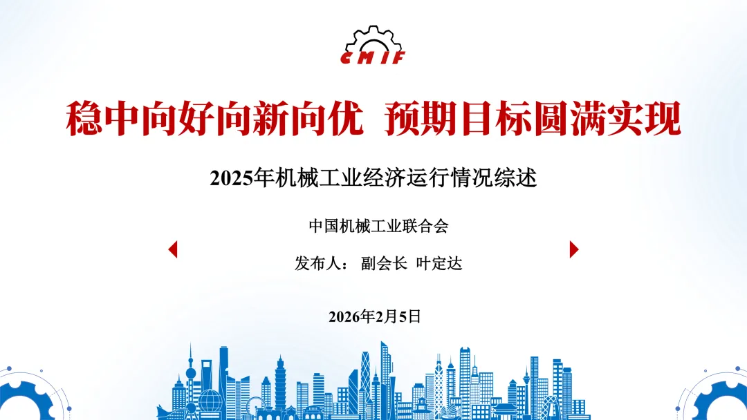 2026年2月5日,中国机械工业联合会2025年全年机械工业经济运行形势信息发布会在京召开。中国机械工业联合会副会长叶定达发布2025年全年机械工业经济运行情况。