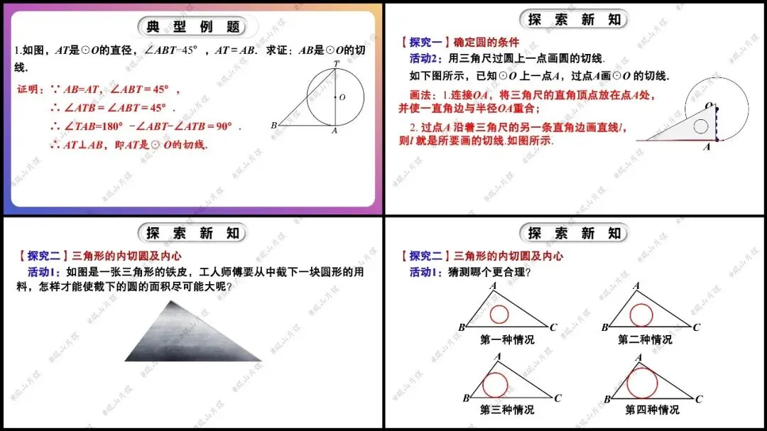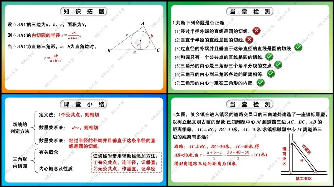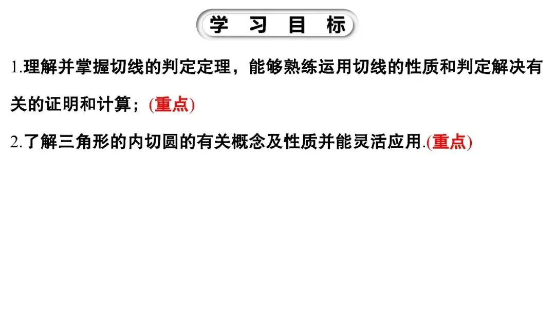 【课件章节】九年级下册 第三章 3.6.2《切线的判定及三角形的内切圆》