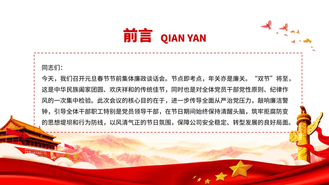 节前集体廉政谈话发言PPT