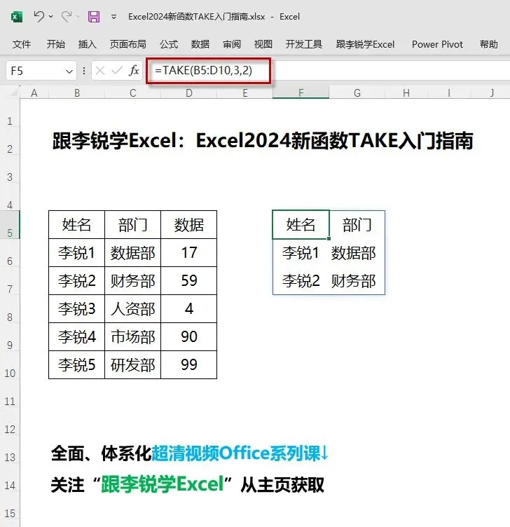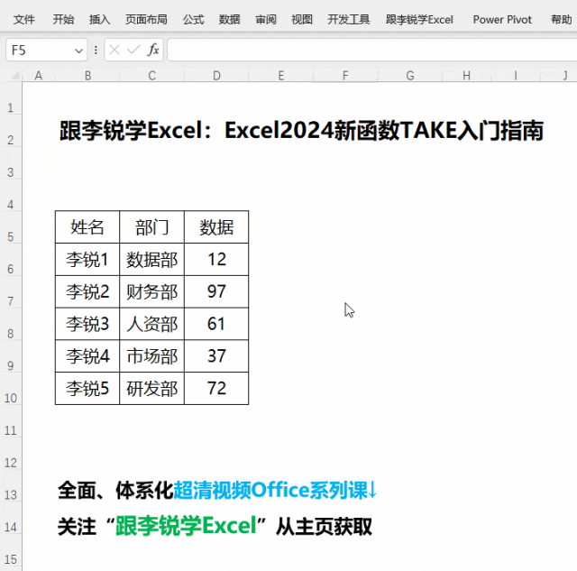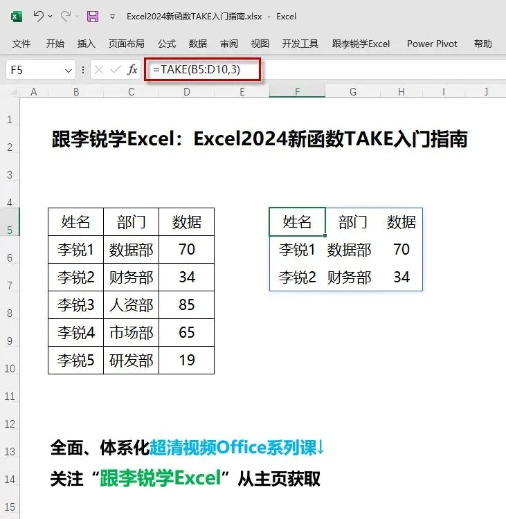 下面我采用动图演示+图文解析的讲解方式,5分钟教会你如何使用Excel 2024新函数TAKE函数根据要求构建表格。