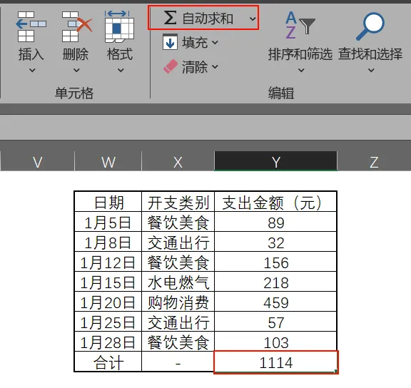 a.选中结果单元格,点击菜单栏【开始】-【自动求和】,Excel会自动识别相邻数据区域,按回车即可;